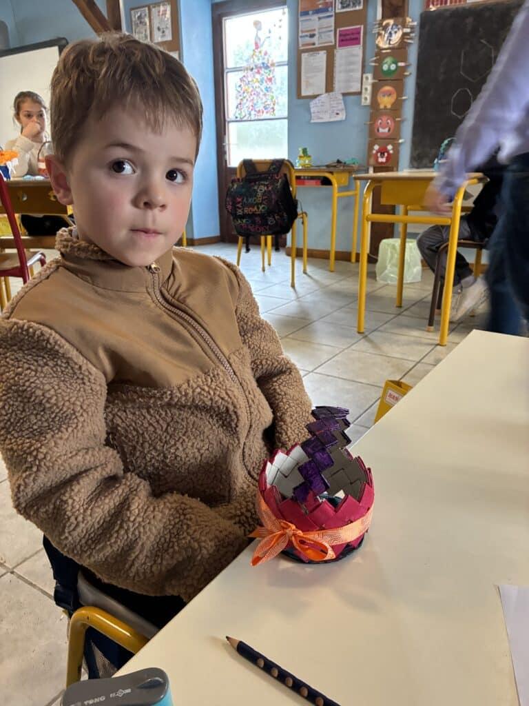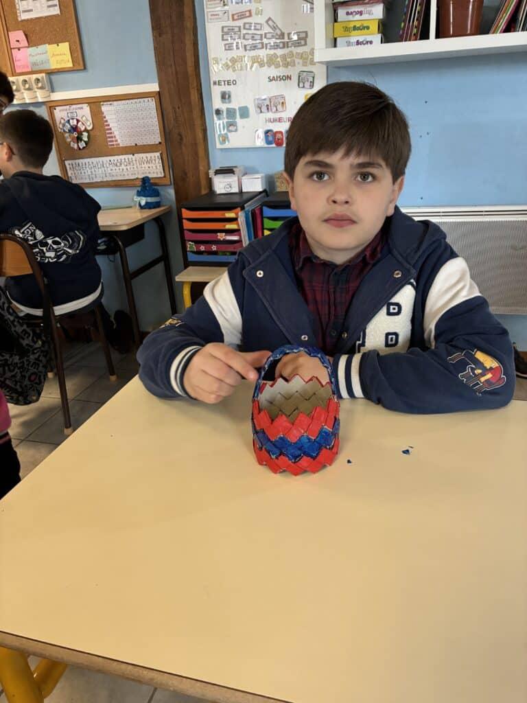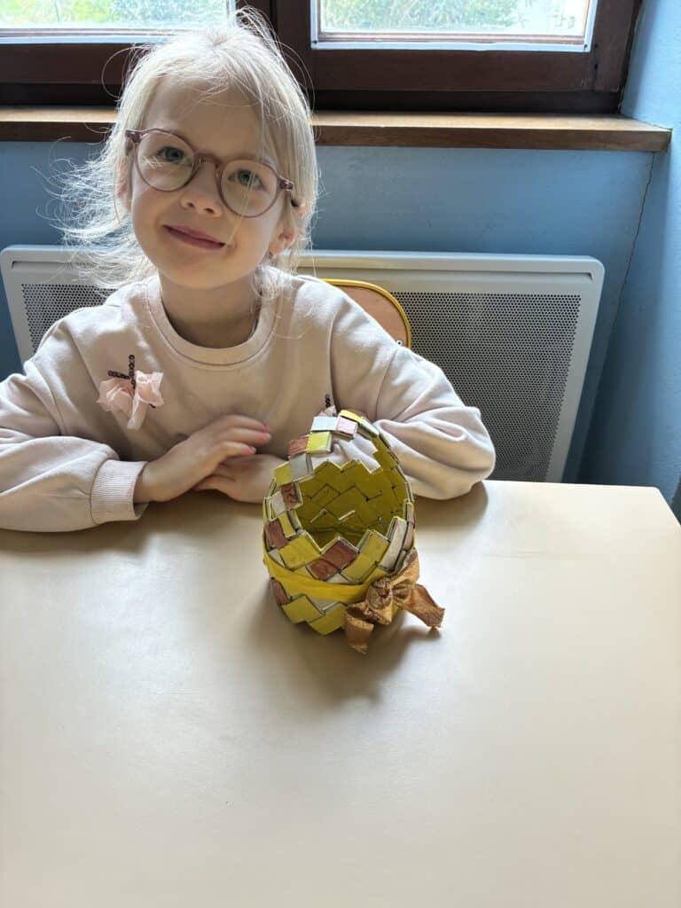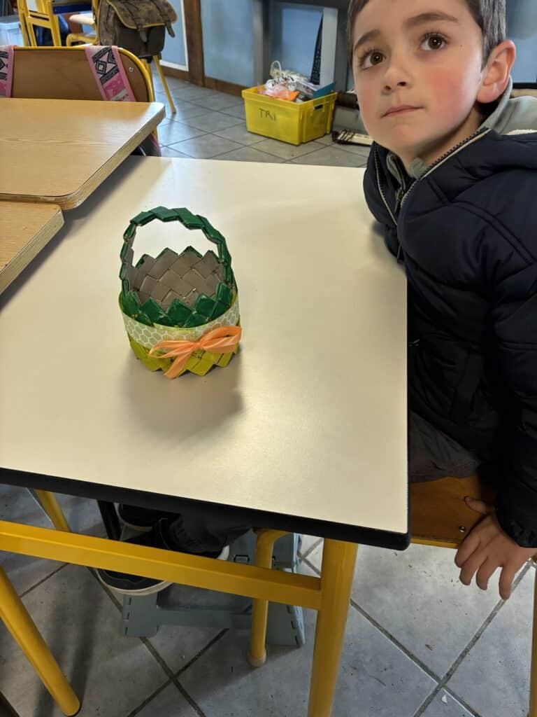 Le carton toujours à l’honneur pour cette chasse aux oeufs 2026 et le tressage pour fil conducteur des réalisations. Une confection toute en concentration et patience. Chaque panier est une création originale.